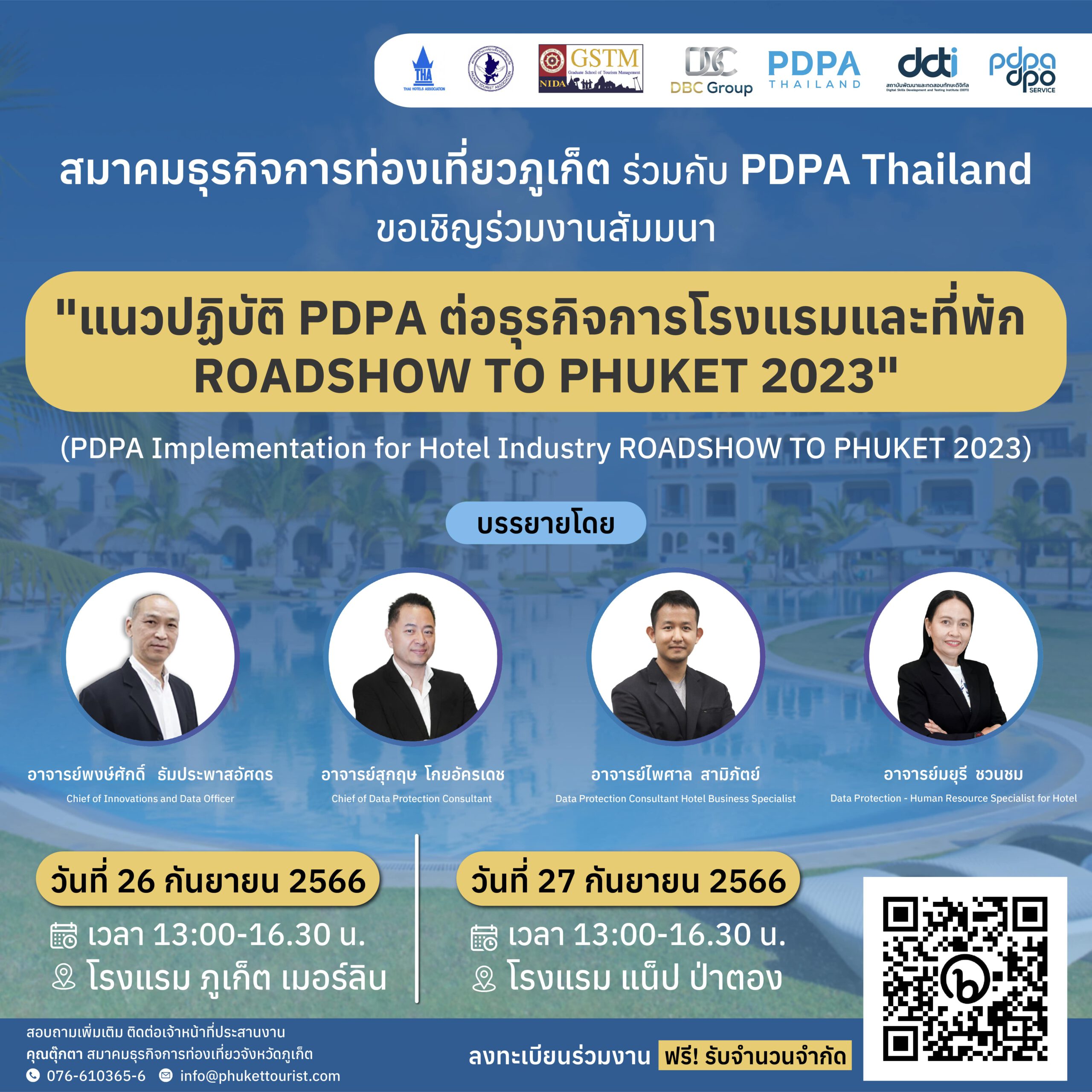 ขอเชิญร่วมงานสัมมนา “แนวปฏิบัติ PDPA ต่อธุรกิจการโรงแรมและที่พัก ROADSHOW TO PHUKET 2023” (PDPA Implementation for Hotel Industry ROADSHOW TO PHUKET 2023)
