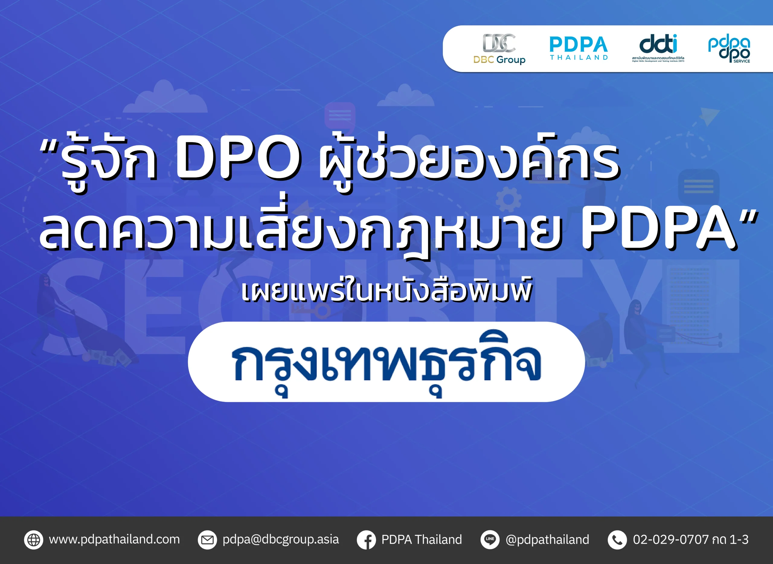 PDPA Thailand ชวนรับชมย้อนหลังกับประเด็นต่อเนื่อง “DPO in Action กรณีศึกษาการปฏิบัติหน้าที่ของ DPO” ในรายการ CEO Vision Plus ทางคลื่นวิทยุ FM 96.5 MHz อาจารย์สุกฤษ โกยอัครเดช ประธานเจ้าหน้าที่ฝ่ายปรึกษาและสอบทาน บริษัท ดีบีซี กรุ๊ป จำกัด ร่วมพูดคุยประเด็นต่อเนื่องจากสัปดาห์ที่แล้ว ซึ่งสัปดาห์นี้พูดคุยเกี่ยวกับกรณีศึกษาการปฏิบัติหน้าที่ของ “DPO” หรือ “เจ้าหน้าที่คุ้มครองข้อมูลส่วนบุคคล” ว่ามีกระบวนการทำงานอย่างไร และองค์กรต้องเตรียมพร้อมอย่างไรบ้างกับการต้องมี DPO สามารถรับชมย้อนหลังพร้อมกันได้แล้วที่ Youtube : https://www.youtube.com/live/eI75pHPZx88?feature=shared&t=80 *รับชมอาจารย์สุกฤษ โกยอัครเดช ให้สัมภาษณ์ในช่วงนาทีที่ 1.20-24.55 น.* #PDPAThailand #DBCGroup #PDPA #พระราชบัญญัติคุ้มครองข้อมูลส่วนบุคคล #DPO #เจ้าหน้าที่คุ้มครองข้อมูลส่วนบุคคล #ผู้ช่วยองค์กร