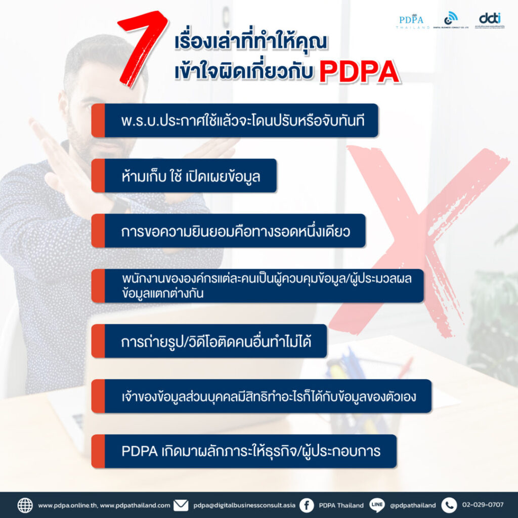 ไม่ว่าคุณจะเพิ่งเคยได้ยิน หรือเริ่มศึกษากฎหมายตัวนี้มาได้สักพักและต้องการทำ Data Protection ให้กับองค์กรอาจรู้สึกมึนงง ว่ากฎหมายตัวนี้มันแสนจะซับซ้อนซ่อนเงื่อน เข้าใจยาก บางครั้งคิดว่าเข้าใจถูกแล้วกลายเป็นว่าเข้าใจคาดเคลื่อนไปอีก PDPA Thailand รวบรวม 7 เรื่องเล่าที่อาจทำให้คุณเข้าใจผิดเกี่ยวกับกฎหมาย PDPA มาเล่าสู่กันฟัง (พร้อมแถลงสิ่งที่เราเก็ตจากประสบการณ์ของเรา)