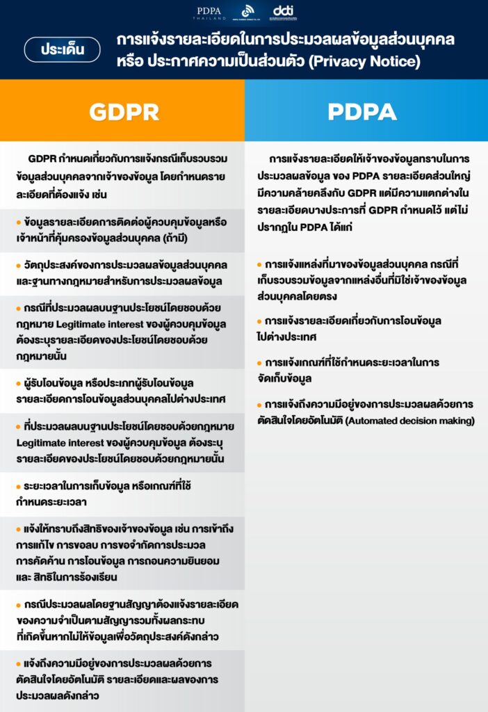 ประเทศไทยได้รับอิทธิพลเกี่ยวกับการคุ้มครองข้อมูลส่วนบุคคลมาอย่างยาวนานมากกว่า 20 ปี อันปรากฏให้เห็นได้จากพระราชบัญญัติข่าวสารของราชการ พ.ศ. 2540 ซึ่งได้กล่าวถึงข้อมูลส่วนบุคคล โดยมีรากฐานมาจาก Privacy Framework ของ EU Directive 1995 (2538) อันเป็นต้นแบบของการคุ้มครองข้อมูลส่วนบุคคลในนานาประเทศ และจาก Privacy Framework ดังกล่าว ทางสหภาพยุโรปได้มีพัฒนาจนนำสู่การบังคับใช้ General Data Protection Regulation: GDPR เมื่อปี 2561 ซึ่งเป็นแนวทางการคุ้มครองข้อมูลส่วนบุคคลที่ได้รับการยอมรับในนานาประเทศ รวมไปถึงประเทศไทยที่เริ่มตระหนักถึงความสำคัญของการคุ้มครองข้อมูลส่วนบุคคล และเล็งเห็นความสำคัญของข้อมูลส่วนบุคคลซึ่งมีผลกระทบในภาคธุรกิจอย่างมีนัยยะสำคัญ ท้ายที่สุดจึงได้มีการตรากฎหมายคุ้มครองข้อมูลส่วนบุคคล หรือ PDPA ขึ้นภายหลังจากที่ GDPR มีผลบังคับใช้เพียง 1 ปี ซึ่งหลักการส่วนใหญ่ตามกฎหมายคุ้มครองข้อมูลส่วนบุคคล (PDPA) มีต้นแบบมาจาก GDPR แต่อย่างไรก็ตาม PDPA ได้มีการพัฒนากฎหมายคุ้มครองข้อมูลส่วนบุคคลในรายละเอียด เพื่อให้สอดคล้องกับบริบทของประเทศไทย โดยกฎหมายทั้งสองฉบับก็มีรายละเอียดที่แตกต่างกันบางประการ ดังตัวอย่างต่อไปนี้
