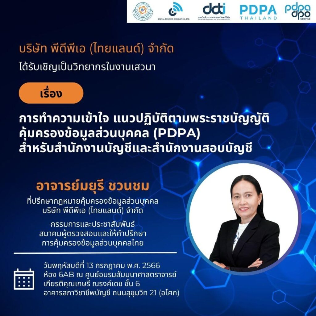 บริษัท PDPA (Thailand) จำกัด ได้รับเชิญเข้าร่วมงานเสวนาเรื่อง “การทำความเข้าใจ แนวปฏิบัติตามพระราชบัญญัติคุ้มครองข้อมูลส่วนบุคคล (PDPA) สำหรับสำนักงานบัญชีและสำนักงานสอบบัญชี”
