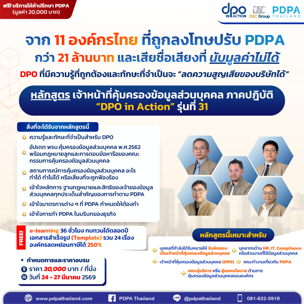 PDPA & DPO Training ฝึกอบรมด้านกฎหมายคุ้มครองข้อมูลส่วนบุคคล