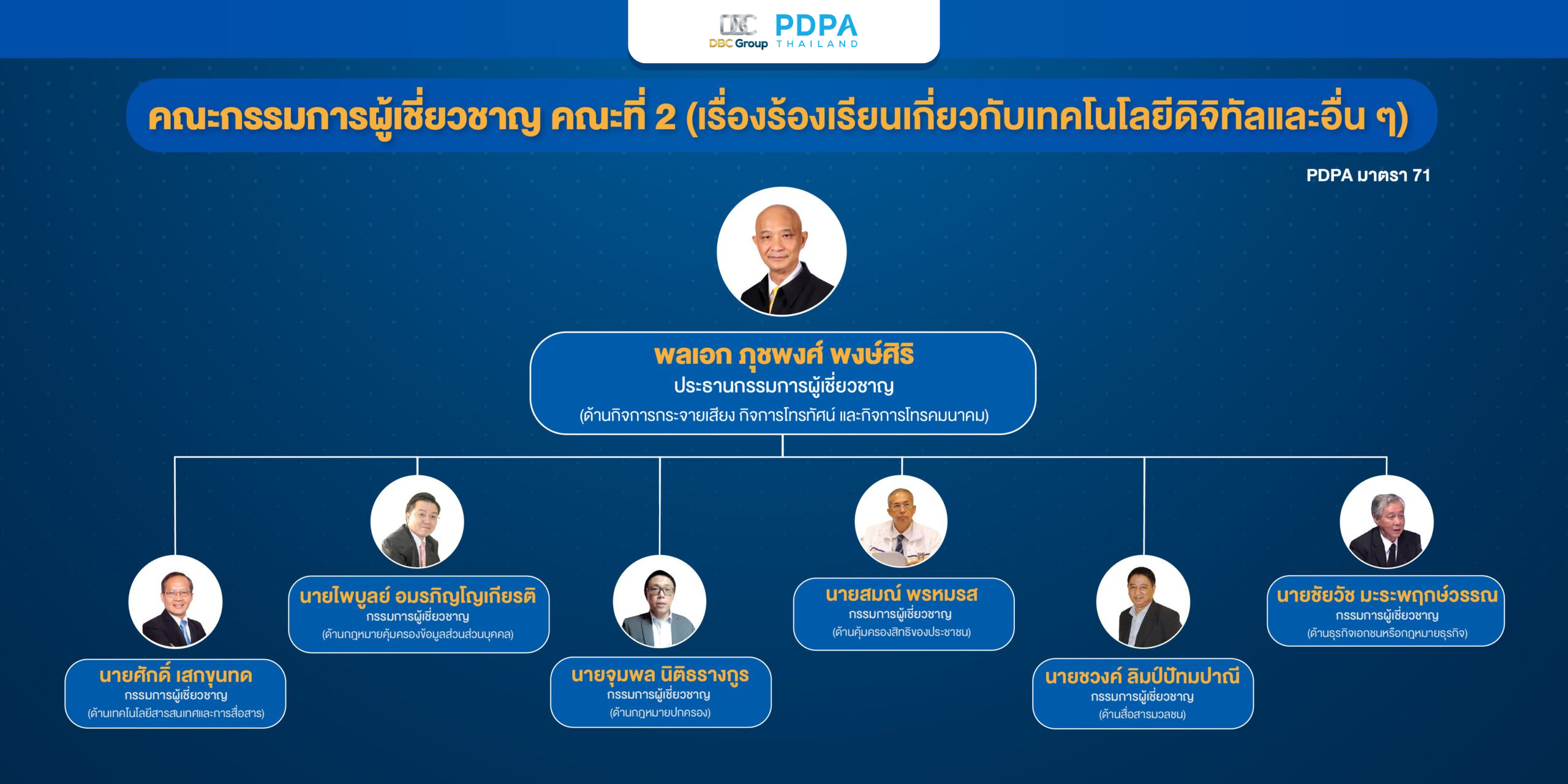 ตามที่ได้มีการประกาศแต่งตั้งคณะกรรมการผู้เชี่ยวชาญ (ด้านเทคโนโลยีดิจิทัลและอื่นๆ ) PDPA Thailand เชื่อมั่นว่าด้วยความรู้และประสบการณ์ของผู้เชี่ยวชาญในคณะนี้จะช่วยส่งเสริมให้การคุ้มครองข้อมูลส่วนบุคคลในหน่วยงานหรือธุรกิจที่เกี่ยวข้อง ได้รับการคุ้มครองสู่มาตรฐานสากลอย่างแน่นอน