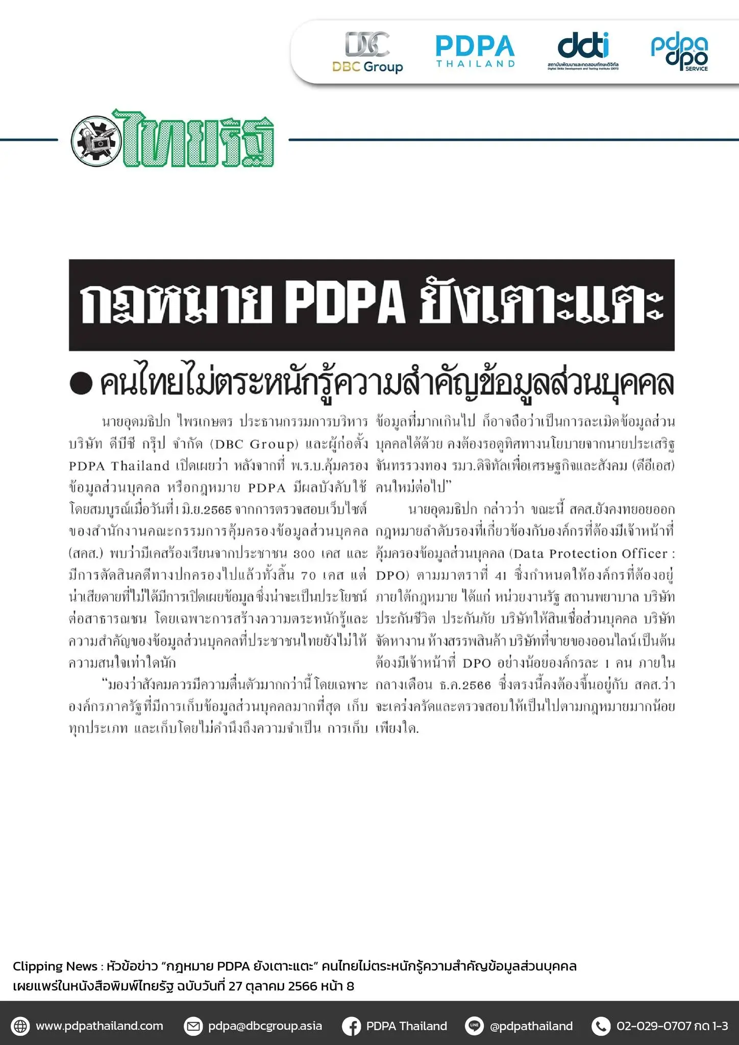 หัวข้อข่าว “กฎหมาย PDPA ยังเตาะแตะ” คนไทยไม่ตระหนักรู้ความสำคัญข้อมูลส่วนบุคคล