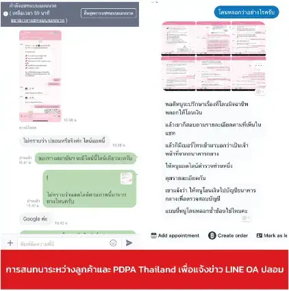 ภาพที่ 1: การสนทนาระหว่างลูกค้าและ PDPA Thailand เพื่อแจ้งข่าว LINE OA ปลอม