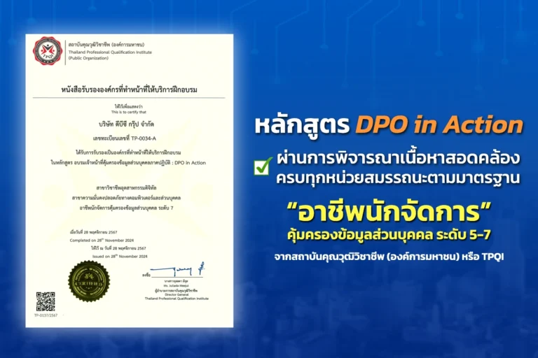 หลักสูตร DPO in Action – เจ้าหน้าที่คุ้มครองข้อมูลส่วนบุคคล ภาคปฏิบัติ