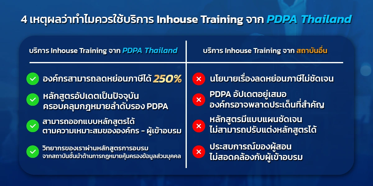 PDPA & DPO Inhouse Training บริการฝึกอบรม ทั้งรูปแบบ Online และ Onsite ลดหย่อนภาษีได้ถึง 250%